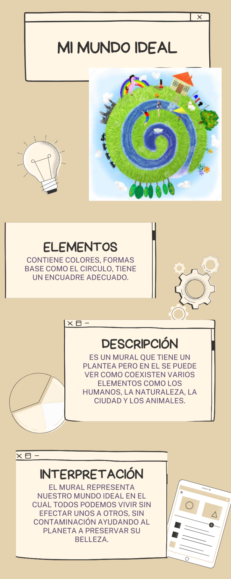 TAMBIÉN REALIZAMOS UNA INFOGRAFÍA DESCRIBIRNDO UN MURAL CON EL TEMA ¨MI MUNDO IDEAL¨